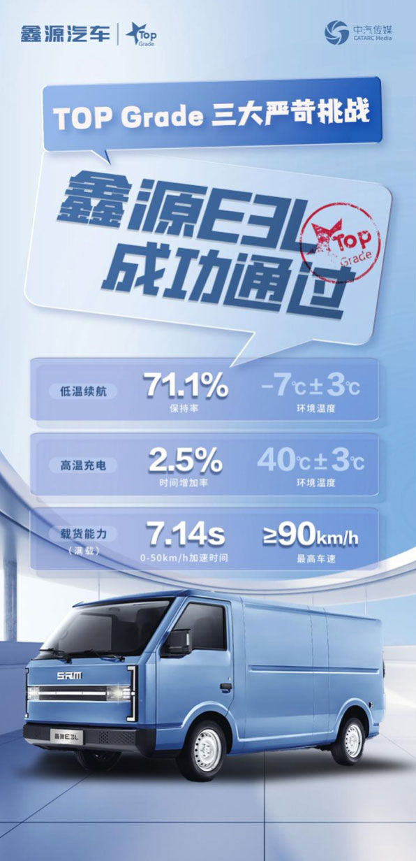 优德88官网网站E3L在由行业权威机构——中汽中心举行的“2024Top Grade顶级品质挑战”极限测试中,,,,,,在严苛的测试条件下乐成通过“低温续航、高温充电和载货能力”三种工况测试并取得优异效果。。。。。优德88官网网站E3L在低温续航保一连率、高温充电时间及满载加速的多项测试中,,,,,,均取得优异的效果,,,,,,这不但得益于优德88官网网站E3L优异的性能,,,,,,也是搭载新一代宁德时代电池的精彩体现。。。。。