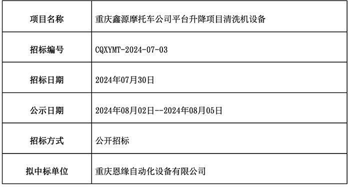 重庆优德88官网网站摩托车公司平台升级项目洗濯机装备已完成招标流程,,,,,,,现公示中标效果如下: