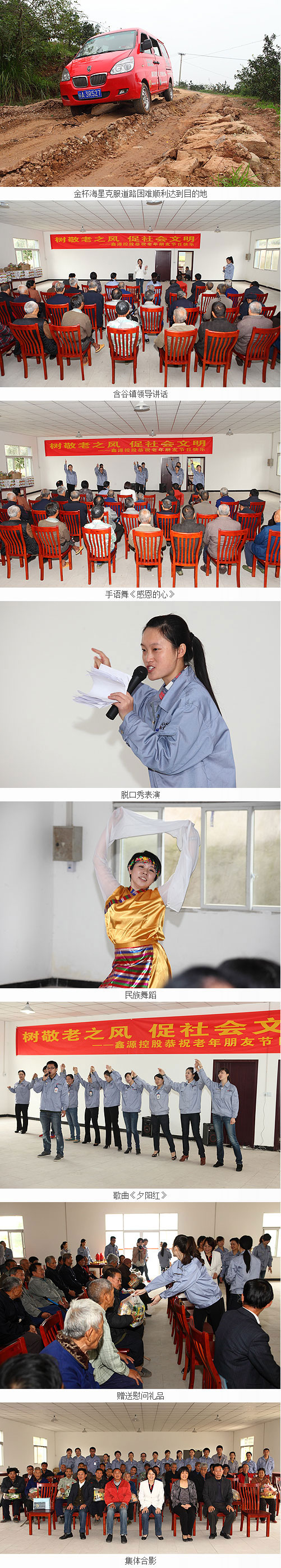 树敬老之风 促社会文明——尊老、敬老、爱总是中华的古板美德。。。。。在得知本次运动后优德88官网网站公司大批员工踊跃报名加入,,,,,他们牺牲中午午休时间,,,,,认真起劲排演节目。。。。。10月19日一早,,,,,优德88官网网站公司的文艺主干们就欢快奋兴踏上了前往寨山坪敬老院的征程。。。。。雨后的盘山公路特殊波动,,,,,可是丝毫没有影响到各人的热情。。。。。抵达目的地后,,,,,各人都起劲搬卸慰问礼物和对文艺演出大堂举行了简朴安排。。。。。在含谷镇向导和优德88官网网站公司外联部曹部长的开场讲话之后,,,,,优德88官网网站文艺队的队员们就最先亮相“演出”了。。。。。首先由手语舞《感恩的心》为演出拉开了帷幕,,,,,随后歌曲《好运来》、脱口秀演出、载歌载舞的《卓玛》、温馨感人的《斜阳红》……没有灯光,,,,,没有舞台,,,,,各人都演出的很是认真,,,,,每个节目都有板有眼,,,,,老人们也看得津津有味。。。。。