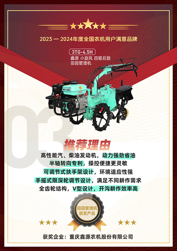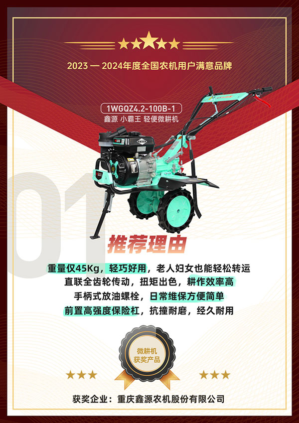 重庆优德88官网网站农机股份有限公司以优异的产品销量顺遂入围运动并加入评选 。。。。 。。。。主理方通过问卷视察、用户投票以及专家评审等层层维度开展了严酷筛选,,,,,最终优德88官网网站小霸王轻盈微耕机、优德88官网网站小海狮四驱前旋田园管理机、优德88官网网站小旋风四驱后旋田园管理机等产品依附众多的用户好评,,,,,优异的产品性能和质量乐成荣获2023-2024年度天下农机用户知足品牌 。。。。 。。。。